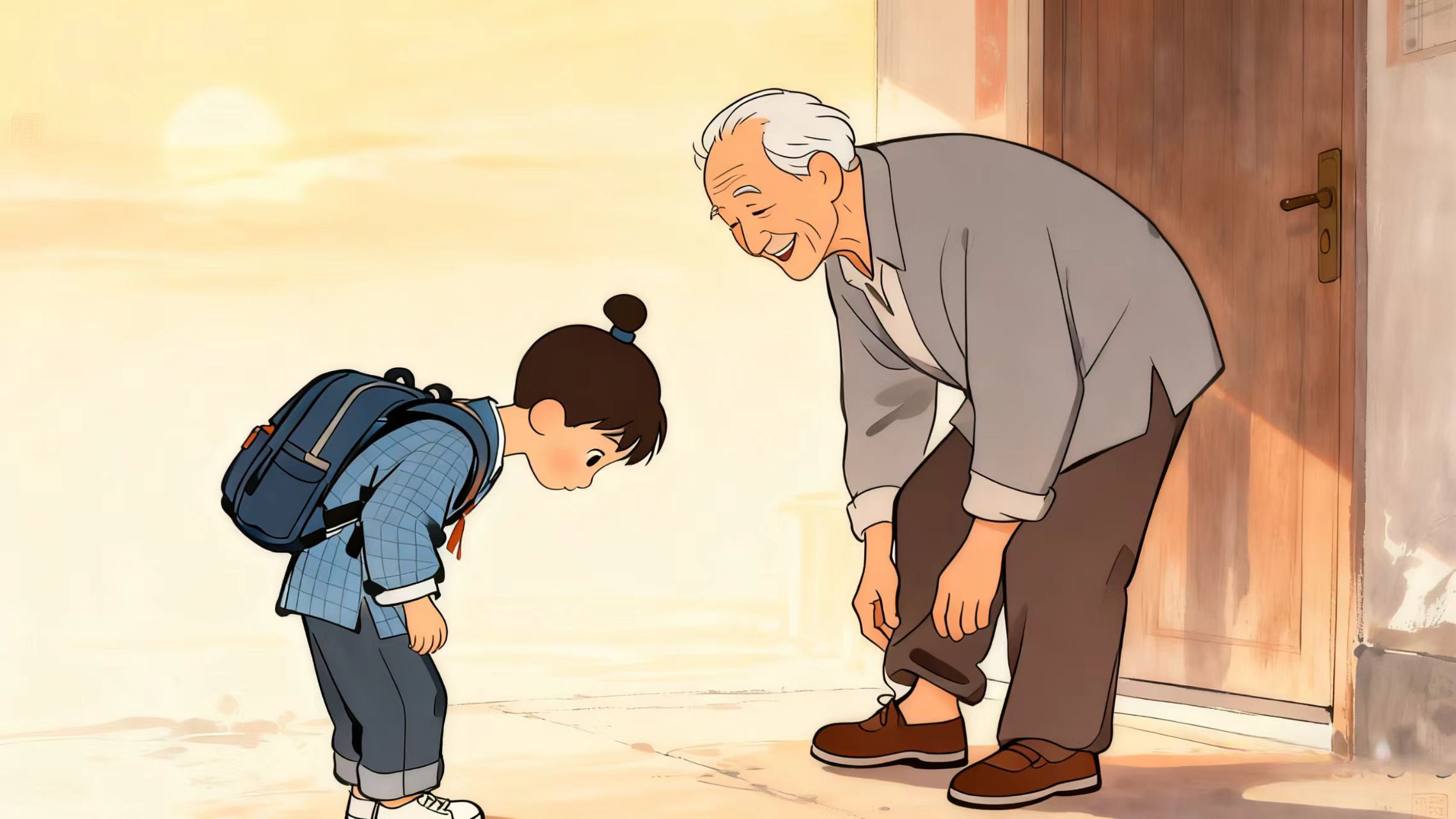清晨上学前,小宇整理好书包,对着门口穿鞋的爷爷深深鞠躬:“爷爷再见,路上小心!”爷爷摸摸他的头:“乖孩子,上课认真听讲呀。”《弟子规》说“出必告,反必面”,外出前告诉长辈去向,回家后当面报平安,这是基本的礼貌哦。