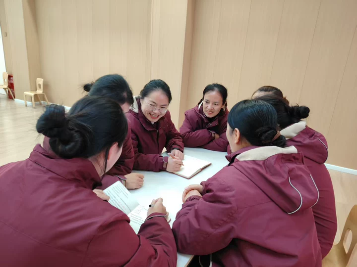 教育是一场温暖的修行,既需传授知识的本领,更要怀揣立德树人的初心。翻开《了凡四训》,“积善之家,必有余庆”的箴言、“命自我立,福自己求”的信念,成为老师们修身育人的精神指引。在研读分享会上,大家围坐一堂,结合教学日常畅谈感悟:有人说,书中“改过迁善”的智慧让自己更懂得包容孩子的不足,以耐心引导代替简单说教;有人感慨,“日行一善”的教诲转化为日常点滴——耐心倾听孩子的心声,每一件小事都是教育的修行。