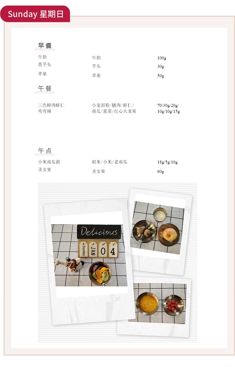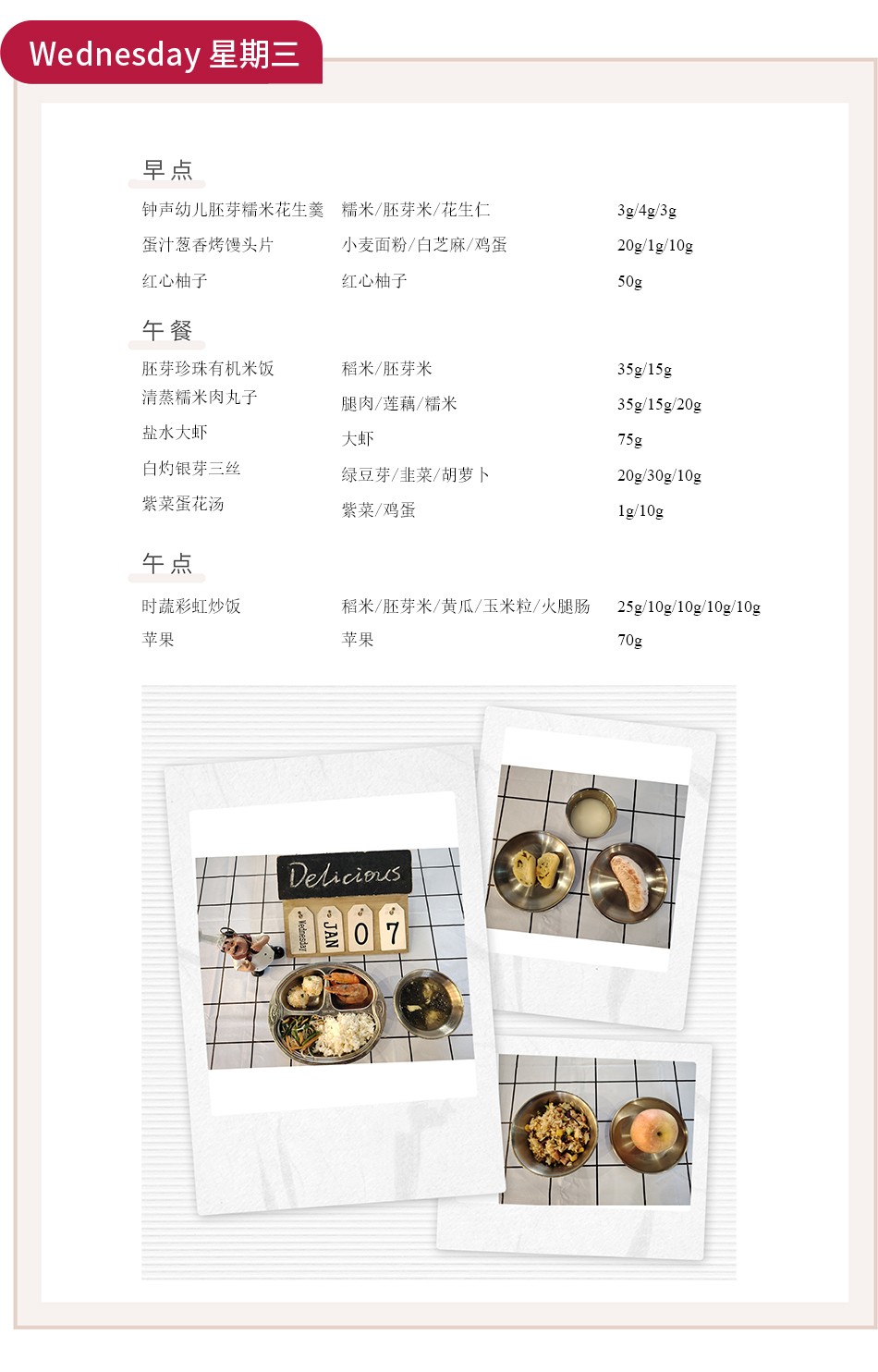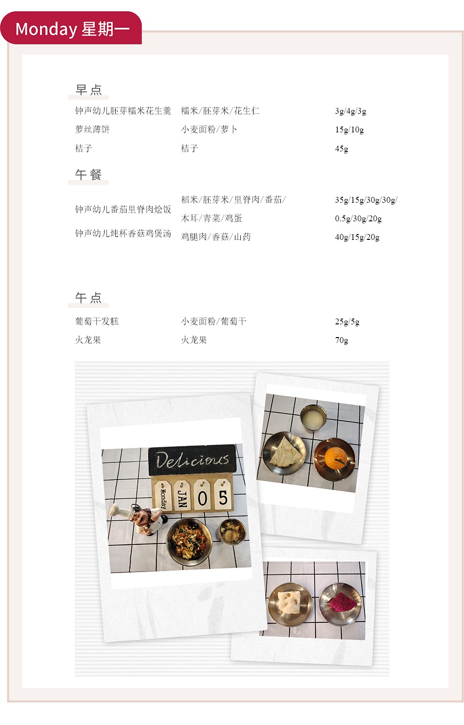 新年伊始,万象更新。本周的食谱在延续冬日温养基调的同时,注入了新的巧思与风味,旨在帮助幼儿适应节后生活节奏,以充沛的精力和健康的体魄开启新的一年。